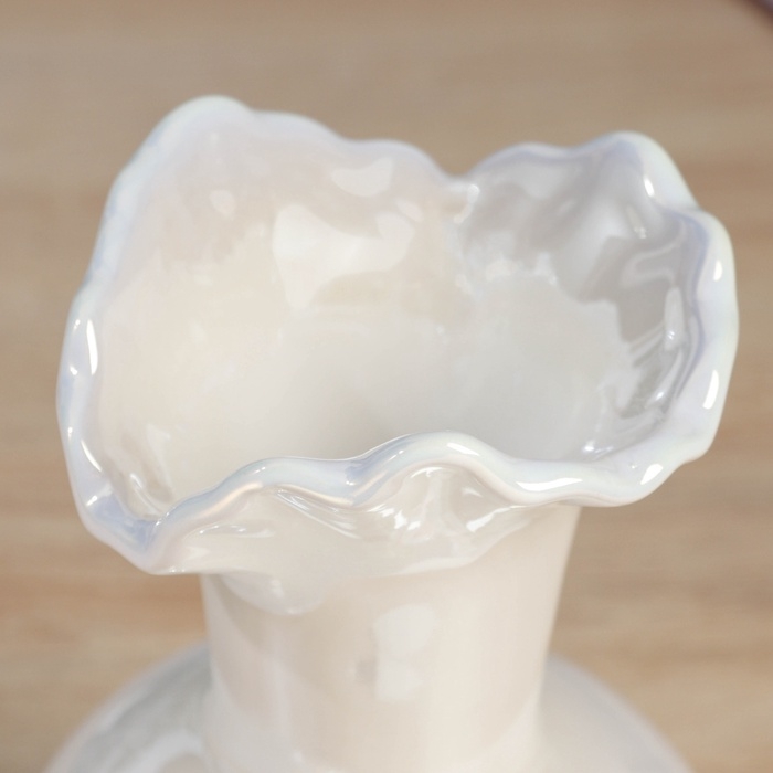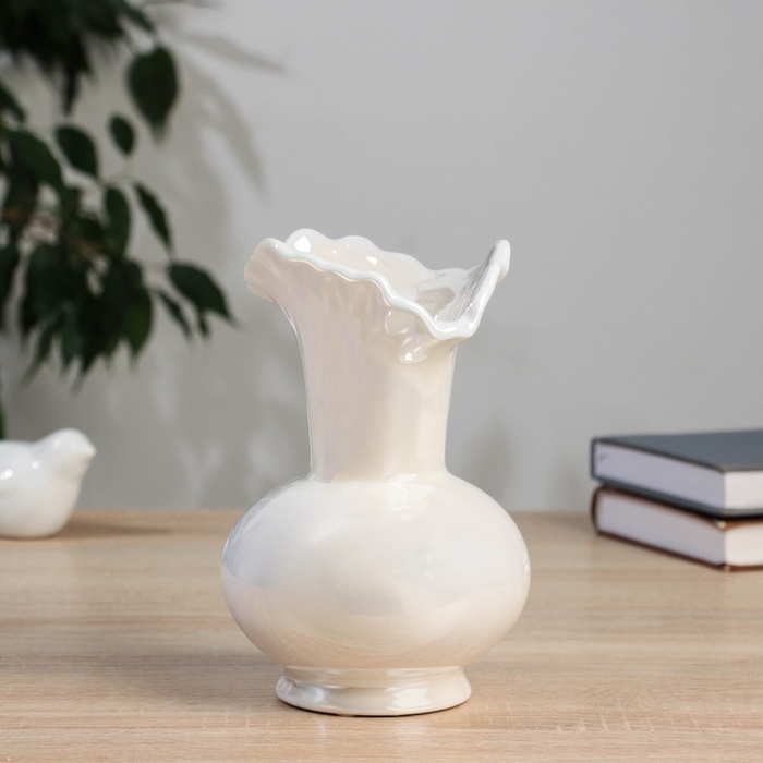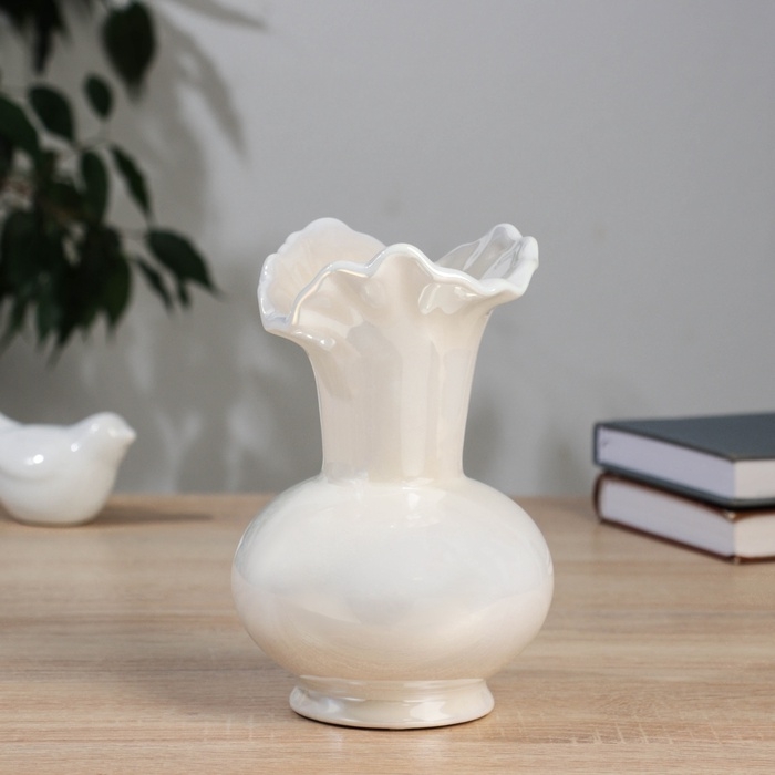 Керамическая ваза для цветов, сухоцветов «Изекил», настольная, d-10 см, h-17 см, белый