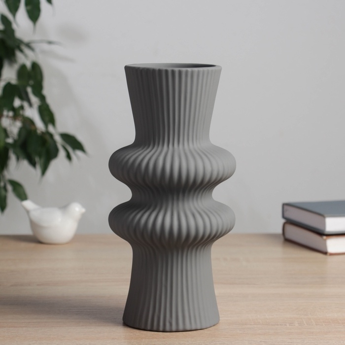Керамическая ваза декоративная настольная «Курт», для цветов, сухоцветов, d-8 см, 24×11 см, серый