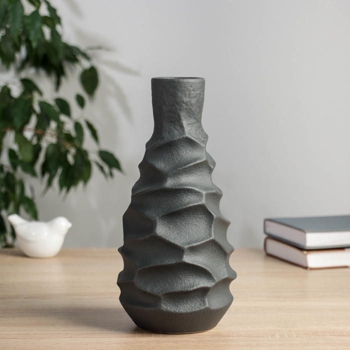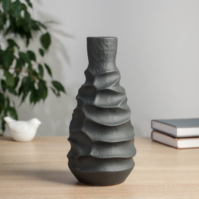 Керамическая ваза декоративная настольная «Майлз», для цветов, сухоцветов, d-5 см, 24.5×11 см, чёрный