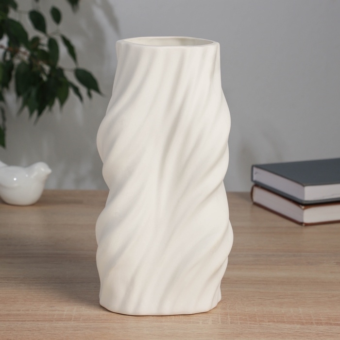 Керамическая ваза декоративная настольная «Оскар», для цветов, сухоцветов, d-9 см, 25×11 см, белый