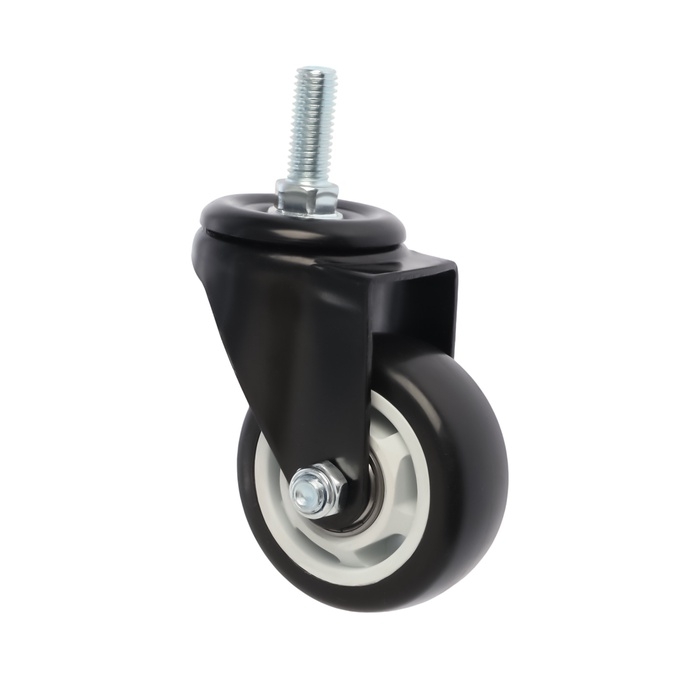 Колесо мебельное ТУНДРА, d=75 мм, поворотное, с футоркой 12х30 мм, без тормоза, черное