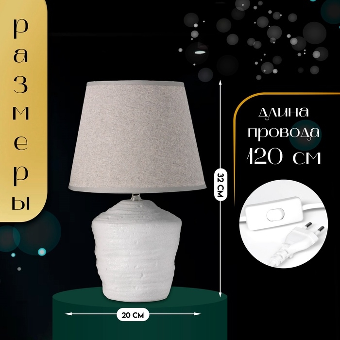 Настольная лампа с абажуром RISALUX «Небраска», 1×40 Вт, Е27, серый, 20×20×32 см