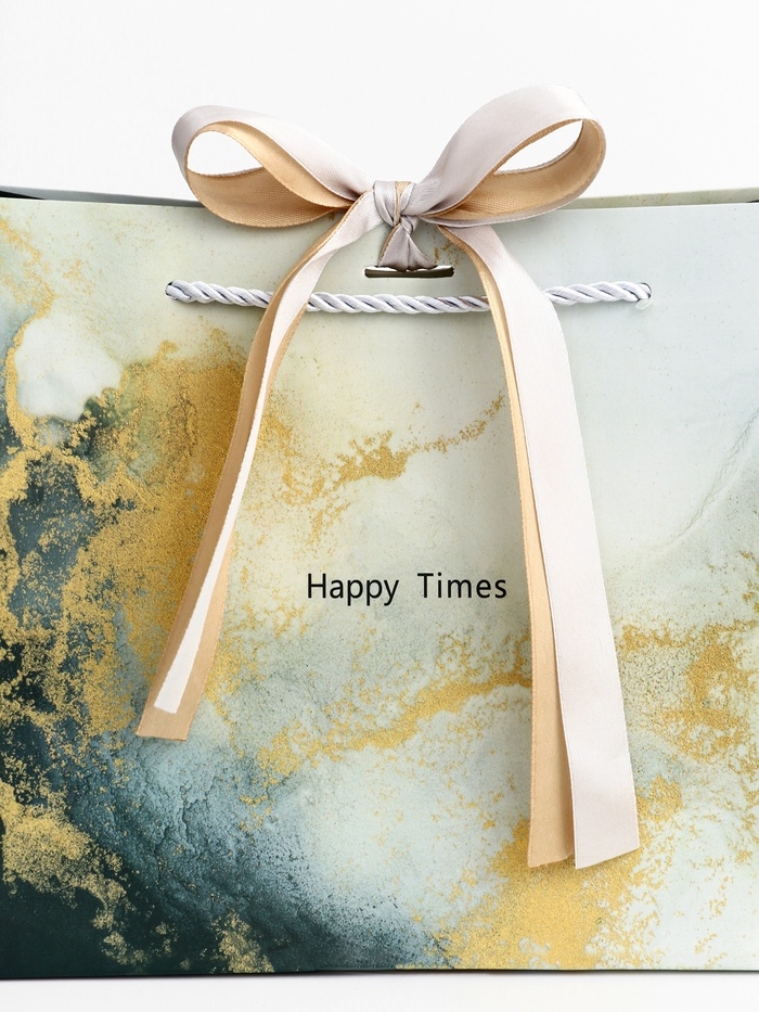 Дизайн пакета выполнен в стиле мрамора, что придает ему утонченность и изысканность. Мраморный узор выглядит дорого и благородно, создавая впечатление, будто подарок находится в руках настоящего мастера.