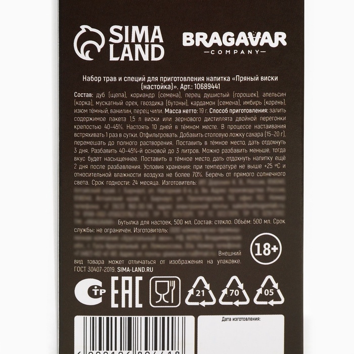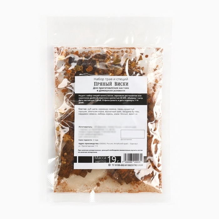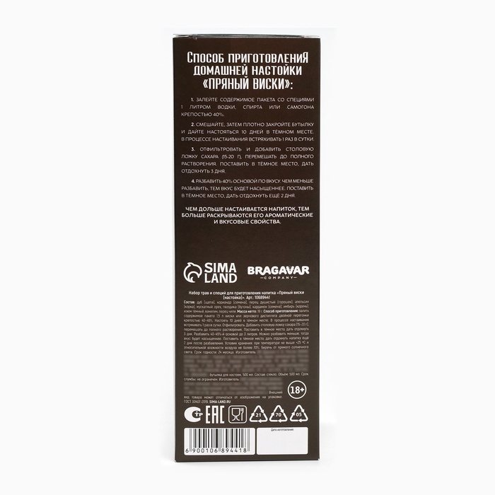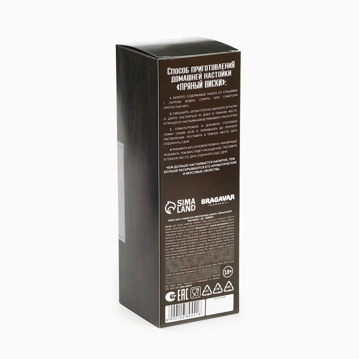 Подарочный набор для приготовления настойки «Пряный виски», набор трав и специй 20 г., бутылка 500 мл., инструкция