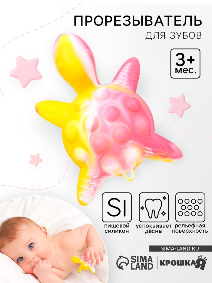 Прорезыватель силиконовый для зубов с погремушкой Крошка Я «Черепаха», розовый