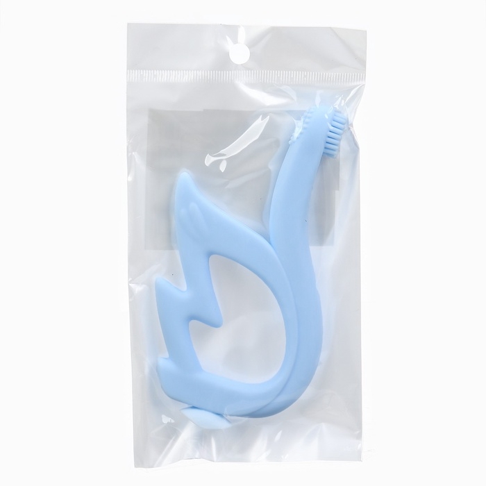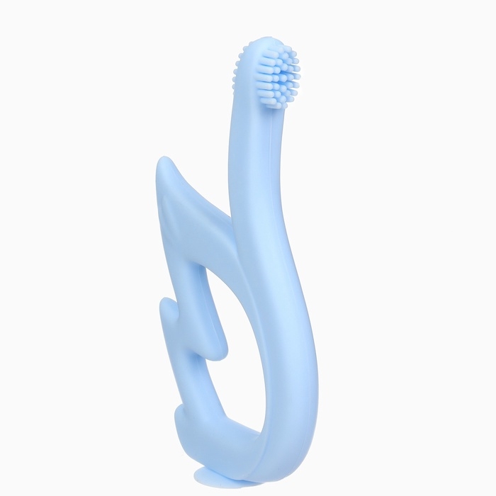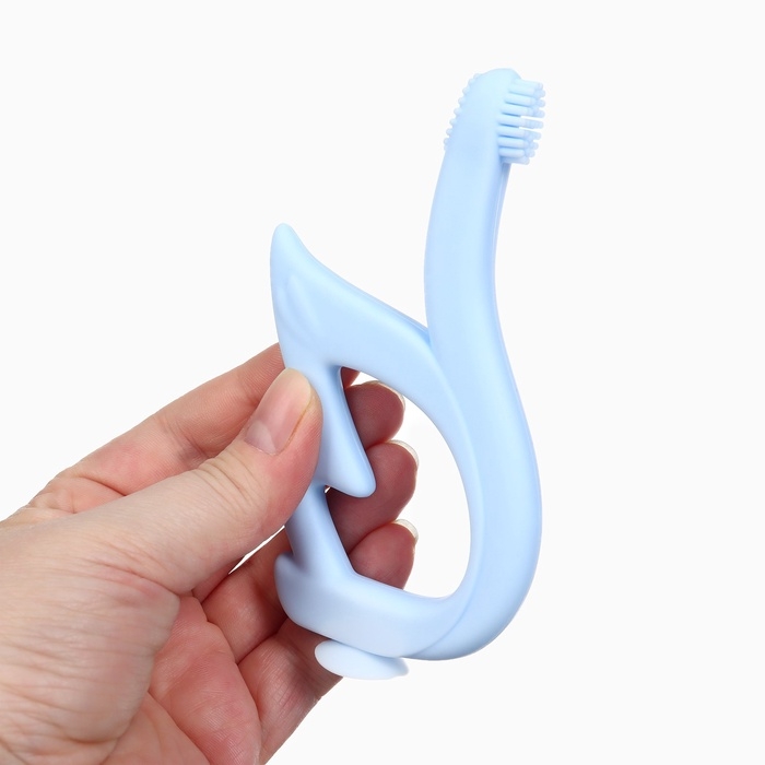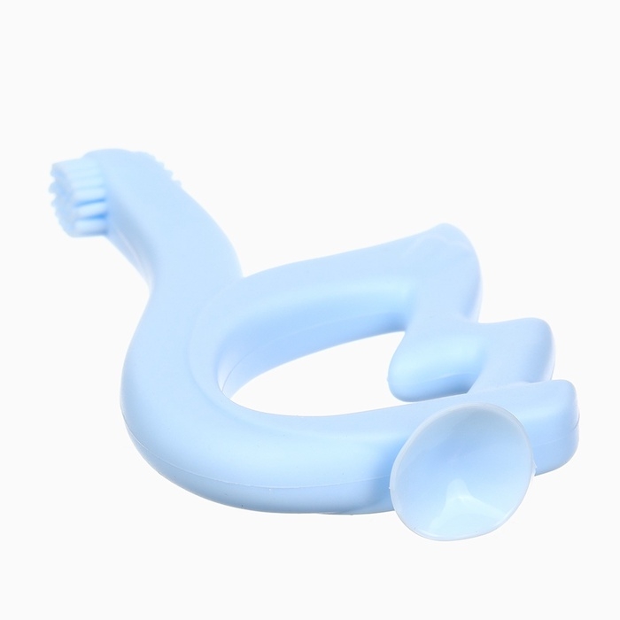 Прорезыватель силиконовый для зубов Крошка Я «Лебедь», щеточка, на присоске, голубой