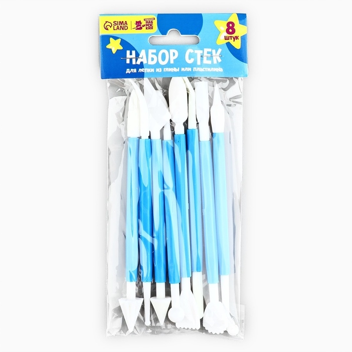 Набор стеков для лепки 8 шт, пластик ТМ Наброскин "Голубые"