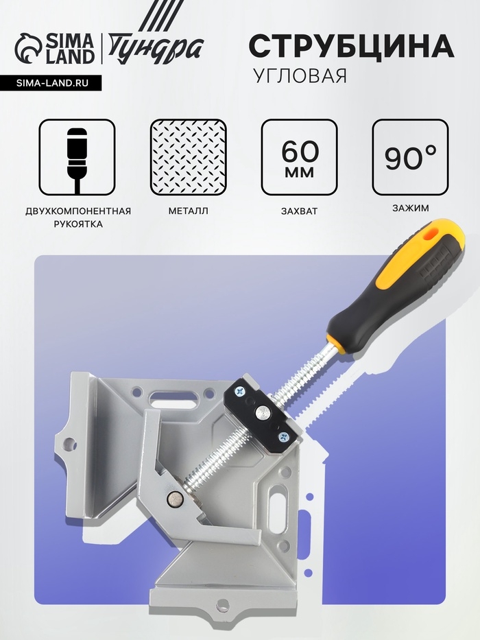 Струбцина угловая ТУНДРА, металлическая, один зажим, 2К рукоятка, 60 мм