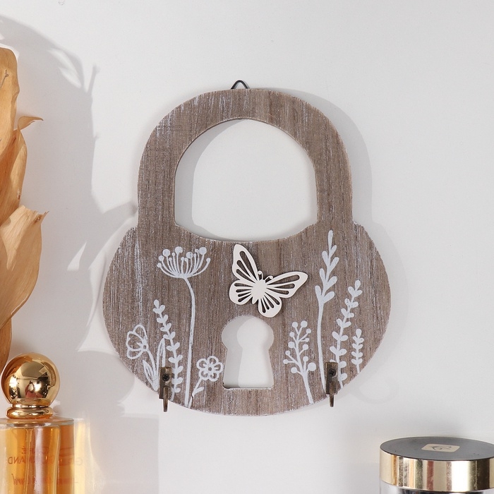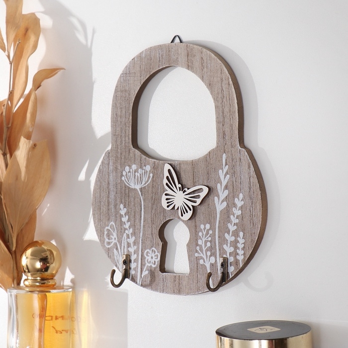 Крючки декоративные дерево "Замок с растениями и бабочкой" 2,5х15х17 см