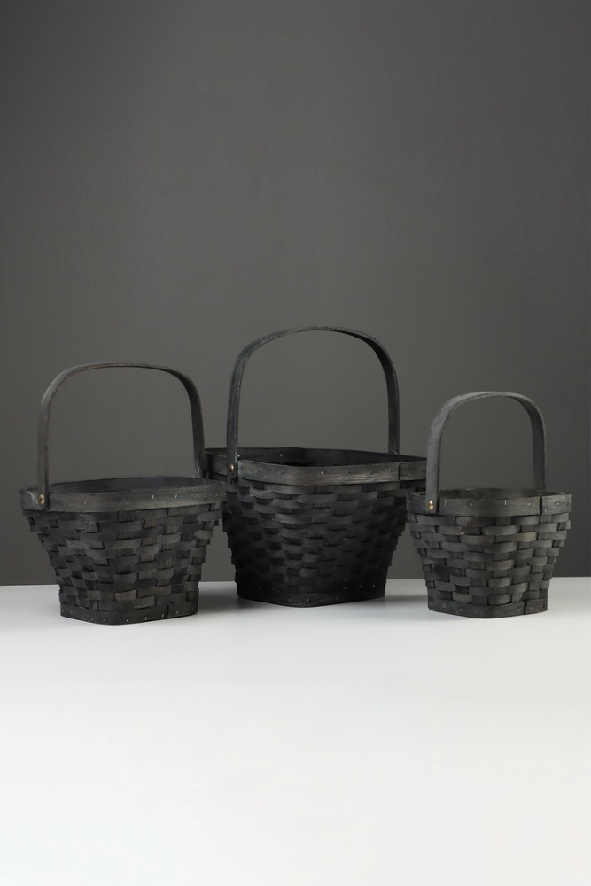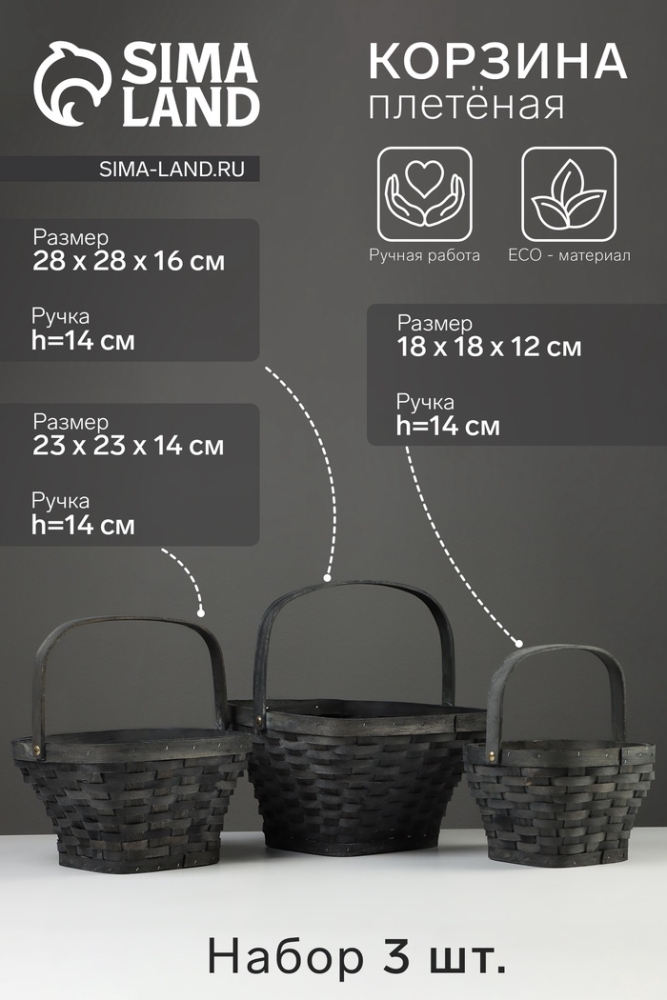 Набор корзин плетёных, 3 шт., 28×28×16 см, 23×23×14 см, 18×18×12 см, ива, серая