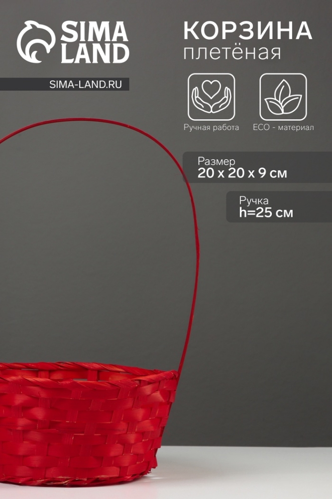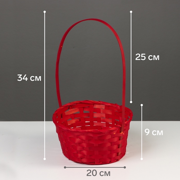 Корзина плетёная, 20×20×9 см, ручка h=25 см, бамбук, красная