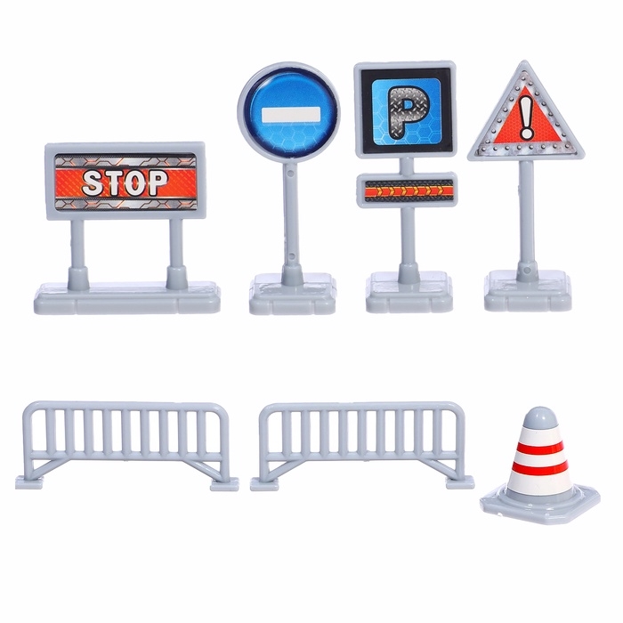 - В комплект входят красивые машинки, самолёты, вертолёт, дорожные знаки и наклейки, которые дополняют игровой процесс и делают его ещё интереснее.