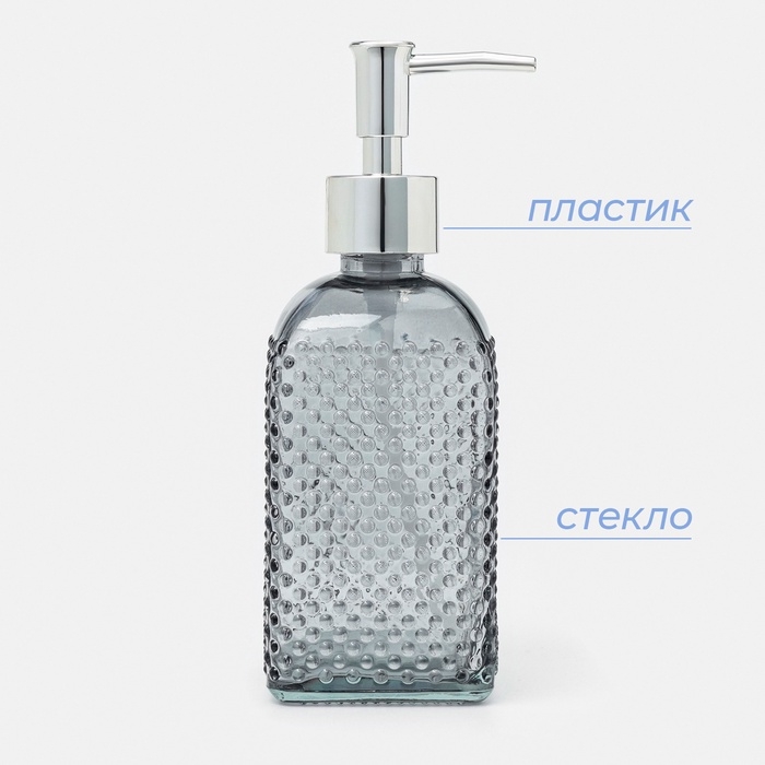 Дозатор для мыла SAVANNA «Пупырка», 400 мл, стеклянный, серый