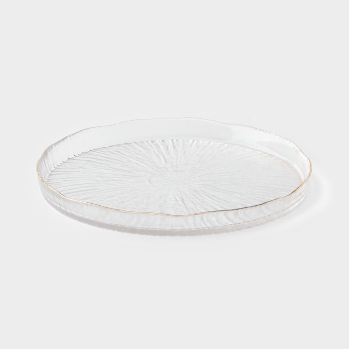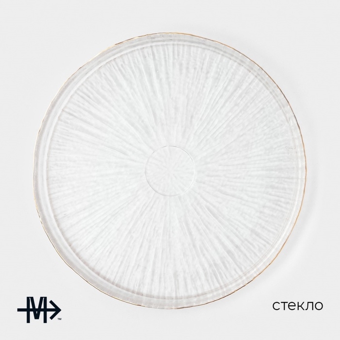 Тарелка обеденная Magistro Water lily, d=20,5 см, стекло, с золотой каймой, прозрачная