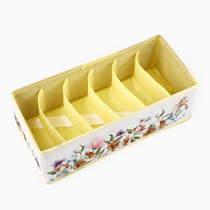 Органайзер для хранения, кофр для белья 6 ячеекк "Цветы", 32 х 15 х 10 см