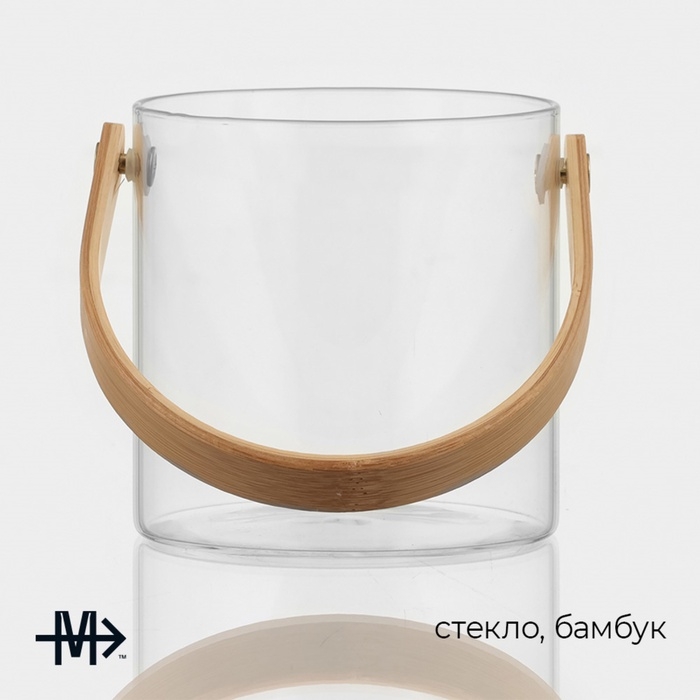 Ведро для льда Magistro «Каиллин», 600 мл, d=10 см, стекло, бамбуковая ручка, прозрачное