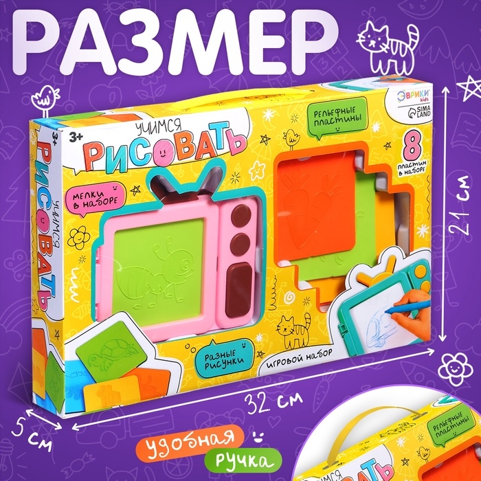 Детский планшет для рисования — отличный выбор для юных художников от 3 лет. Этот набор помогает ребёнку развивать воображение, творческие навыки и мелкую моторику. В комплект входят рельефные шаблоны и мелки, которые делают процесс обучения рисованию лёгким и увлекательным.