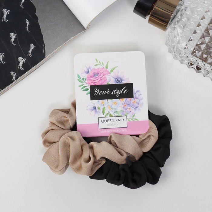 Резинка для волос "Орбита" (набор 2 шт) Ариадна классик, 8 см, чёрный бежевый