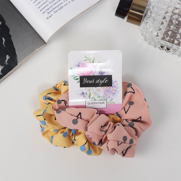 Резинка для волос "Орбита" (набор 2 шт) Ариадна лето колор, 10 см, розовый жёлтый