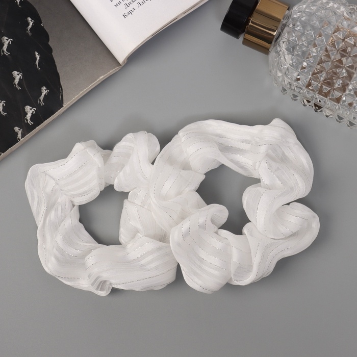 Резинка для волос "Орбита" (набор 2 шт) Ариадна полосы блеск, 9 см, белый