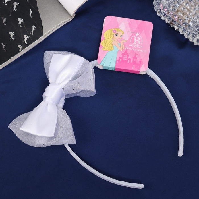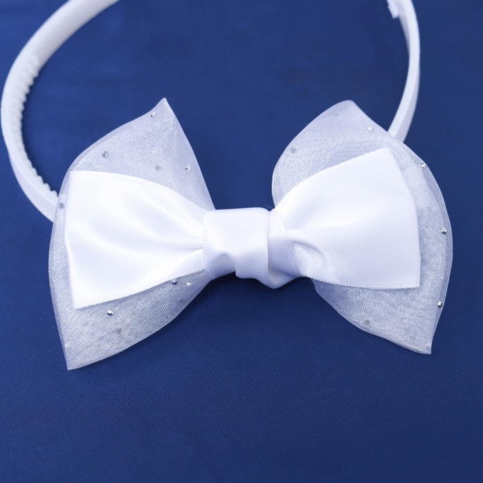 Ободок для волос "Школьница" бант классик блеск, 11х1 см, белый