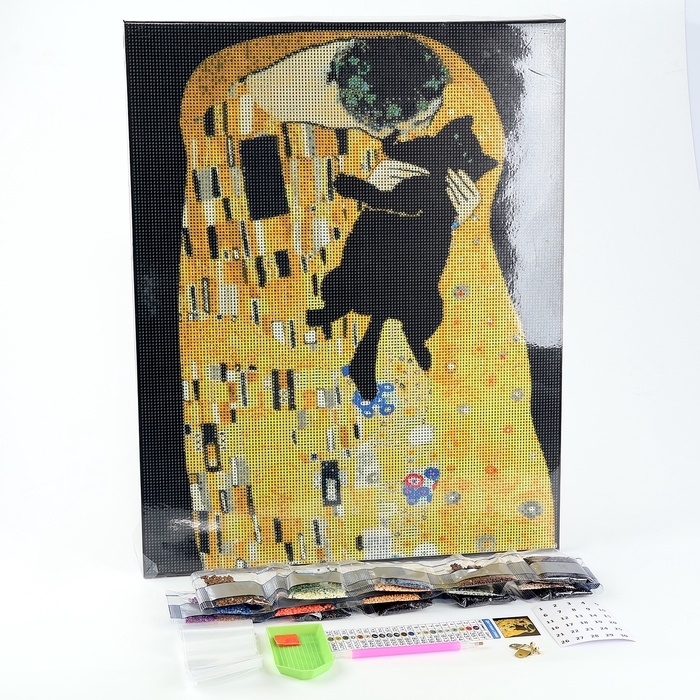 Алмазная мозаика с полным заполнением на холсте с подрамником «Поцелуй с котом», 40 х 50 см