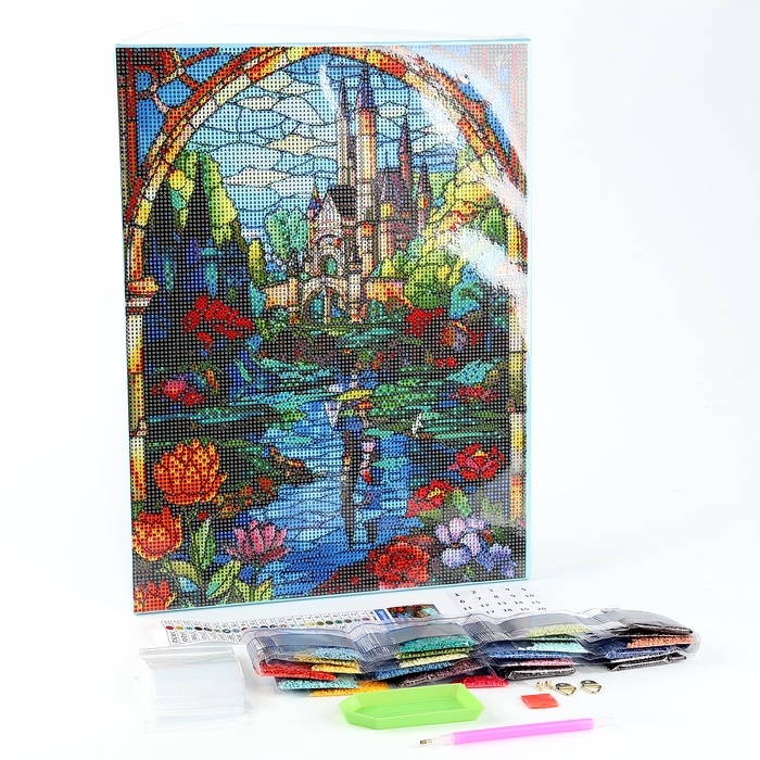 Алмазная мозаика с полным заполнением на холсте с подрамником «Замок», 30 х 40 см