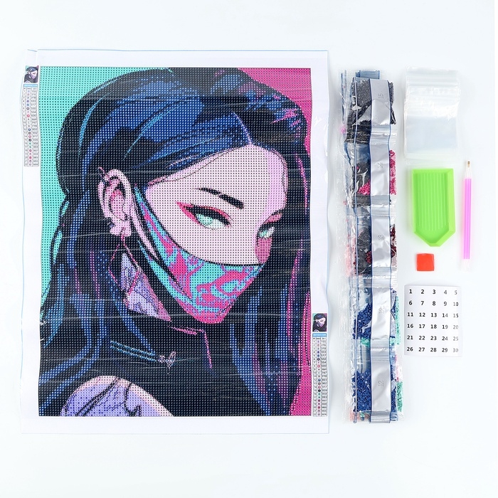 Вам предстоит разложить кристаллики карандашом по пронумерованной схеме. Холст с клеевым покрытием будет надёжно удерживать стразы.