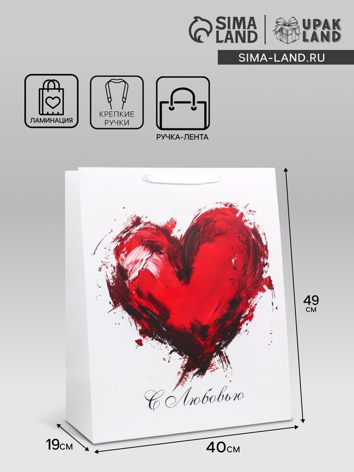 Пакет подарочный ламинированный вертикальный «С любовью», XL 40 × 49 × 19 см