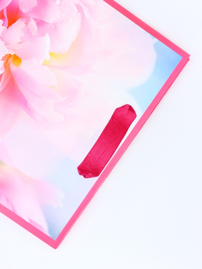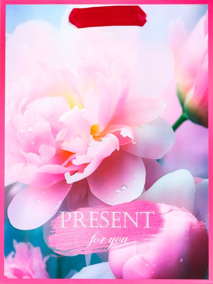 Этот яркий и праздничный подарочный пакет станет идеальным выбором для поздравления девушки на 8 Марта! Вертикальный формат пакета позволяет удобно разместить различные виды подарков, такие как косметика, украшения или книги.