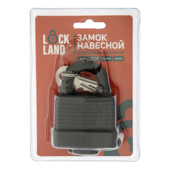 Замок навесной LOCKLAND, 50 мм, влагозащищенный, короткая дужка, 2 ключа, цвет черный