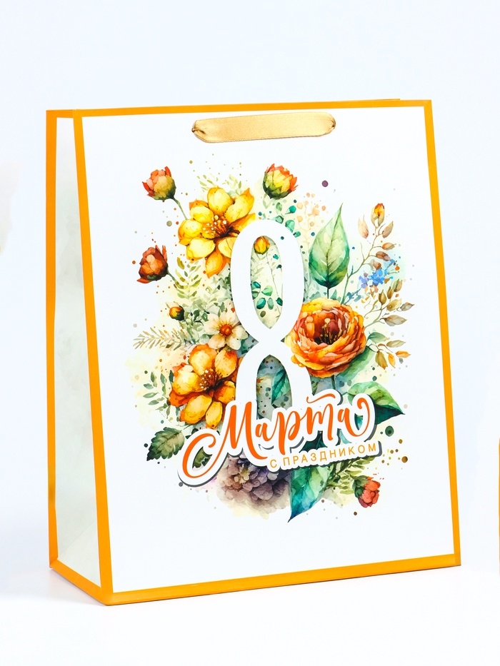 Этот яркий и праздничный подарочный пакет станет идеальным выбором для поздравления девушки на 8 Марта! Вертикальный формат пакета позволяет удобно разместить различные виды подарков, такие как косметика, украшения или книги.