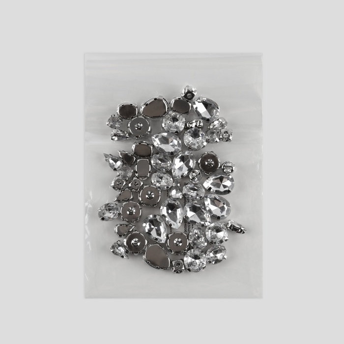 Стразы пришивные «Ассорти», в оправе, набор 50 шт, цвет серебристый