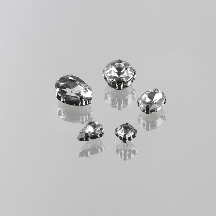 Стразы пришивные «Капля», в оправе, 10 × 14 мм, 20 шт, цвет белый опал