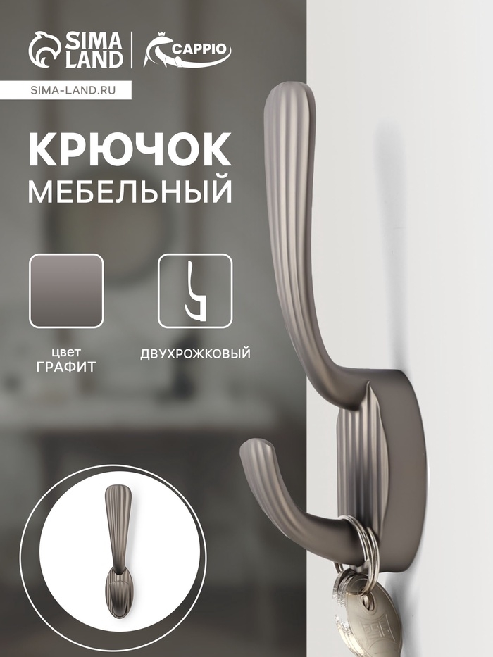 Крючок мебельный CAPPIO SEA, двухрожковый, цинк, цвет графит
