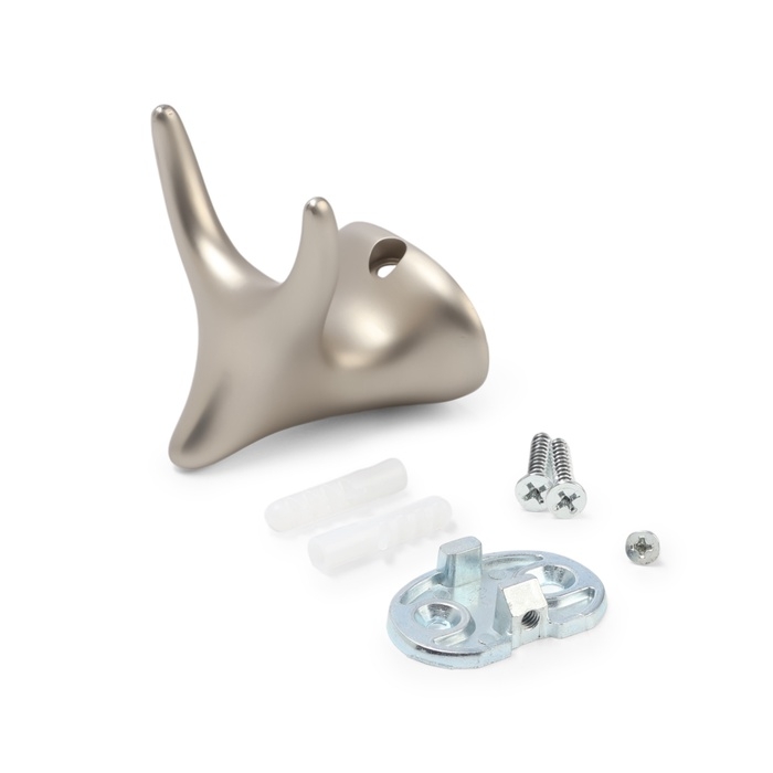 Крючок мебельный CAPPIO BAMBI, двухрожковый, цинк, цвет матовый сатиновый никель