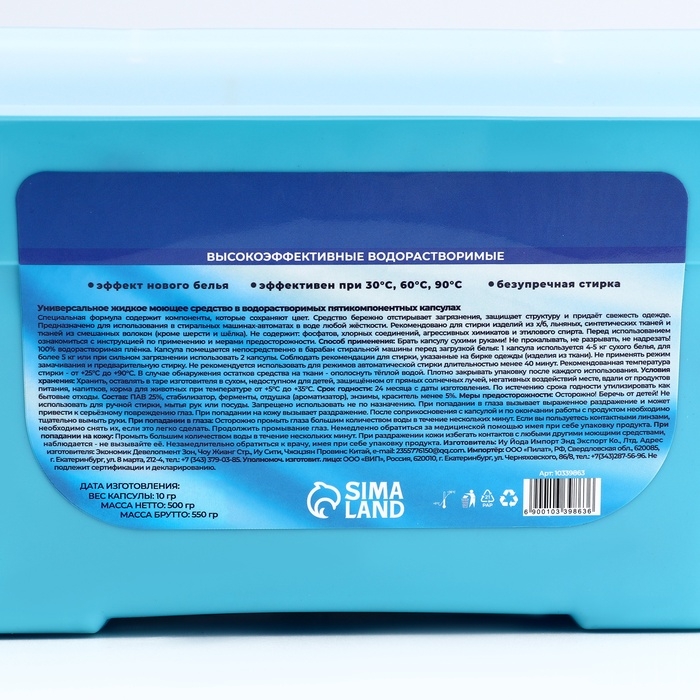 Упаковка на 50 капсул обеспечит вас достаточным запасом моющего средства на долгое время. Забудьте о сложностях выбора средств для стирки – достаточно одной капсулы, и она справится со всеми задачами.