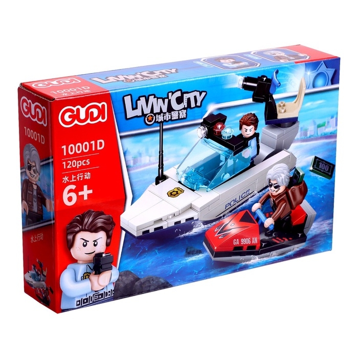 Конструктор блочный для мальчиков Полиция «Погоня на катере», 120 деталей