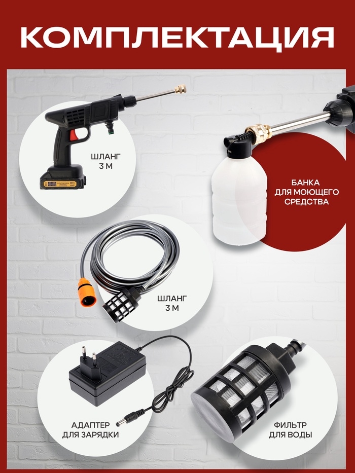Мойка высокого давления аккумуляторная ТУНДРА, Li-ion 20 В, 2 Ач, 28 бар, шланг 3 м