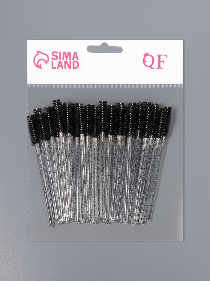 Щёточки для бровей и ресниц, набор - 50 шт, 9,5 см, цвет чёрный/прозрачный