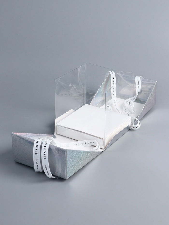 Особенность этой коробки заключается в том, что её картонные боковинки открываются, словно лепестки цветка, предоставляя легкий доступ к содержимому и добавляя процессу распаковки элементы интриги и восторга. Такое нестандартное решение подчеркивает уникальность вашего подарка и создает атмосферу настоящего торжества.