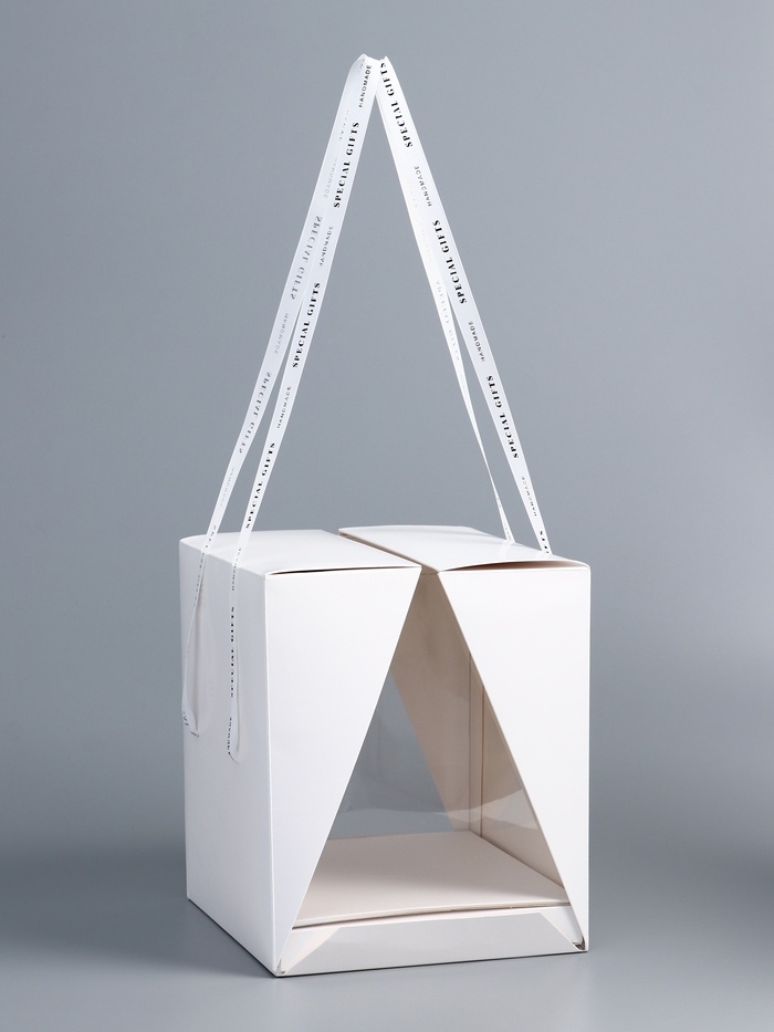 Эта белоснежная коробочка размером 21 х 21 х 25 см выполнена из высококачественного ПВХ-материала, который придает ей гладкость и прочность. Особенностью этой коробки являются ее уникальные картонные боковинки, которые элегантно раскрываются подобно нежным лепесткам цветка.