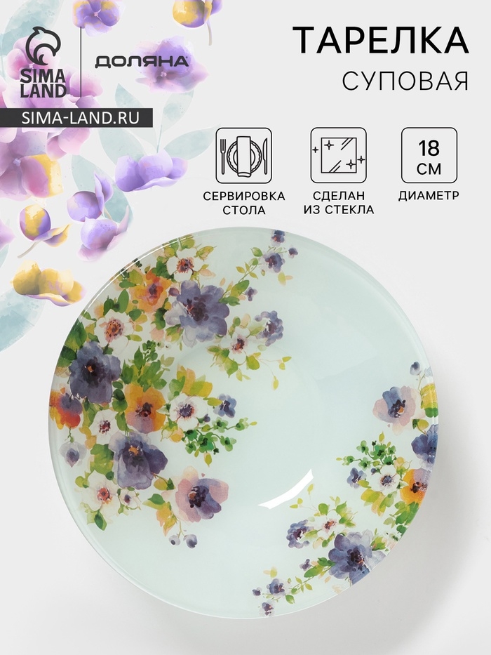 Тарелка суповая Доляна «Букет незабудок», d=18 см, стекло, рисунок