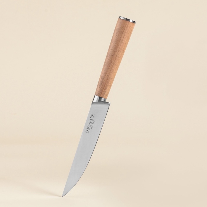 - Стильный дизайн: бежевый цвет и натуральная деревянная ручка придают ножу элегантный и современный вид.