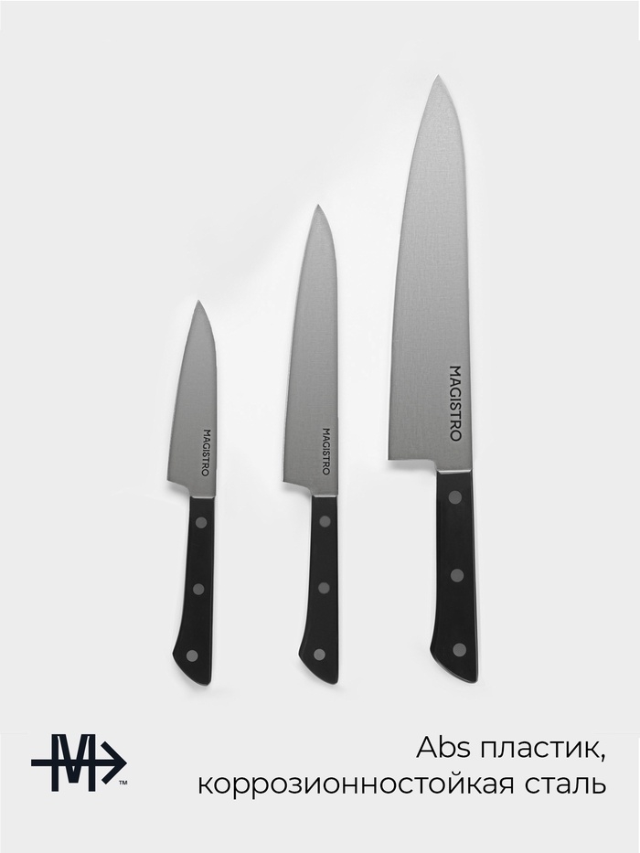 Набор кухонных ножей Magistro «Hinshitsu», 3 шт: овощной, универсальный, шеф, черный