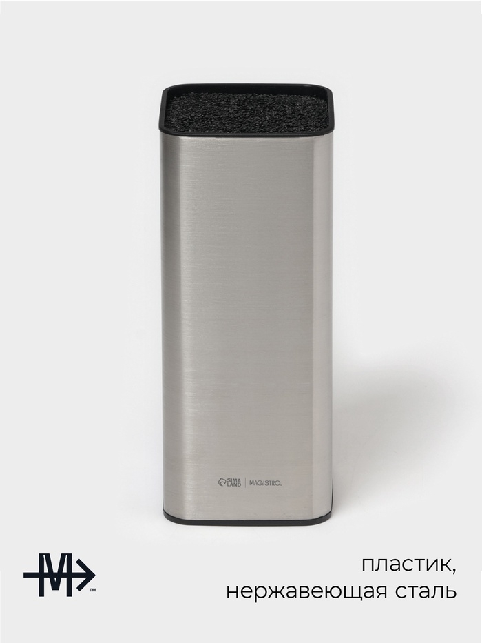 Подставка для ножей с наполнителем Magistro «Металлик», 22,5×9,5×9,5 см, серебристая