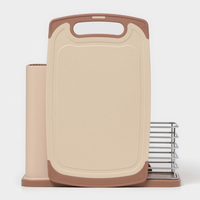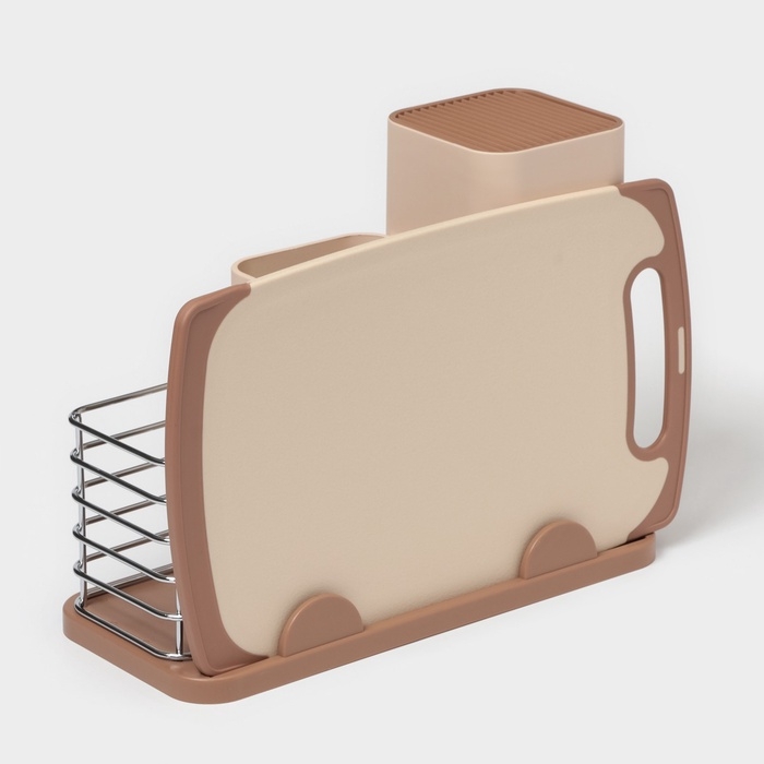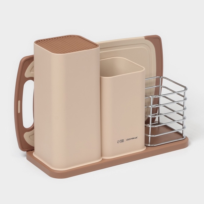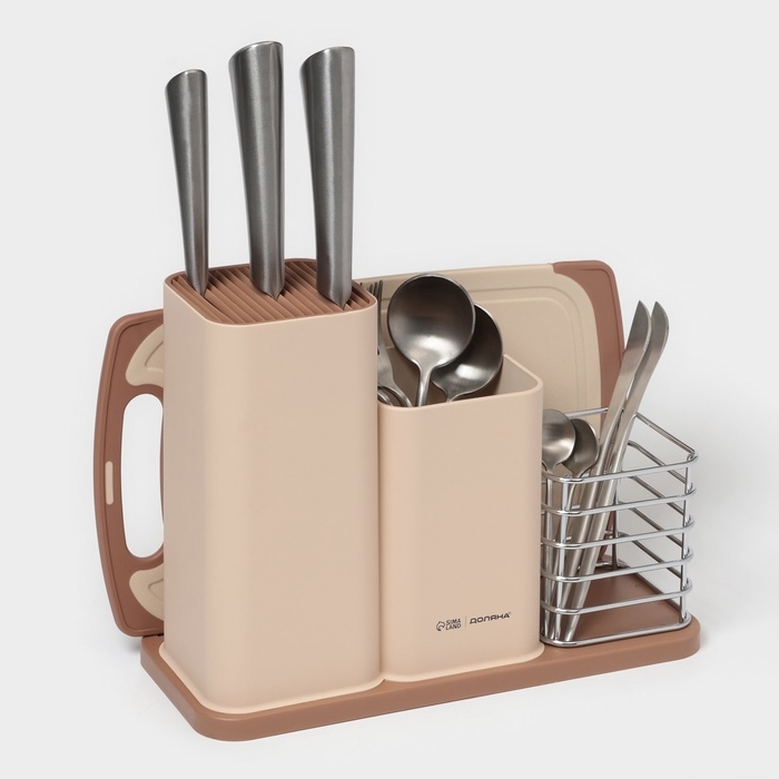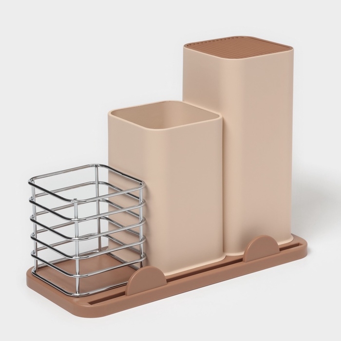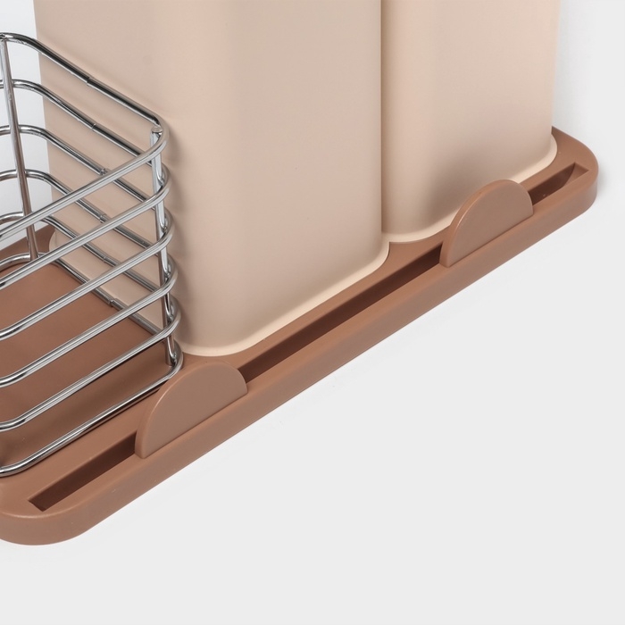 Подставка для ножей и столовых приборов Доляна «Нежность», пластик, бежевая