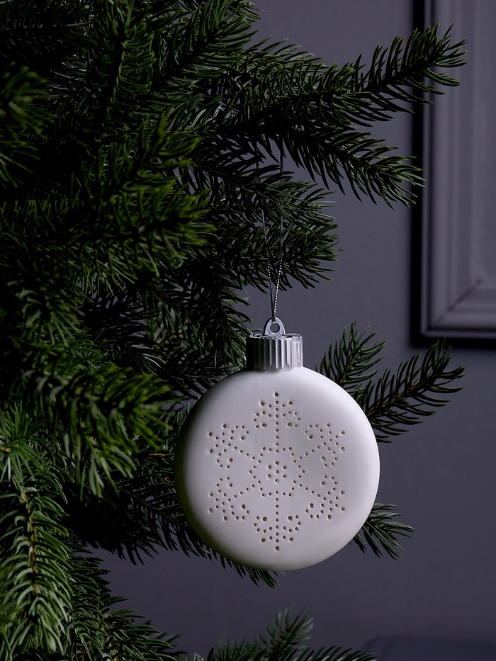 Елочный шар "Снежинка" 8.7х3.1х9.8 см, 1 LED, LR44x3(в компл.), свечение тёплое белое