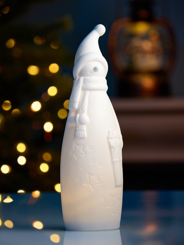 Светодиодная фигура "Снеговик в колпаке" 6х5.5х19.8 см, 1 LED, LR44x3(в компл.), свечение тёплое белое