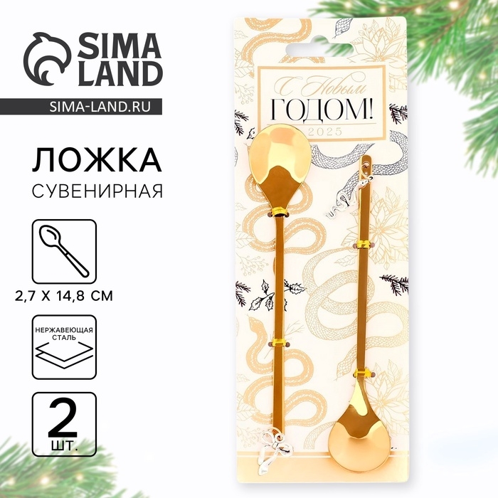 Подарочный набор ложек с подвесами «С Новым годом 2025!», 2 шт., 14.8 х 2.7 см